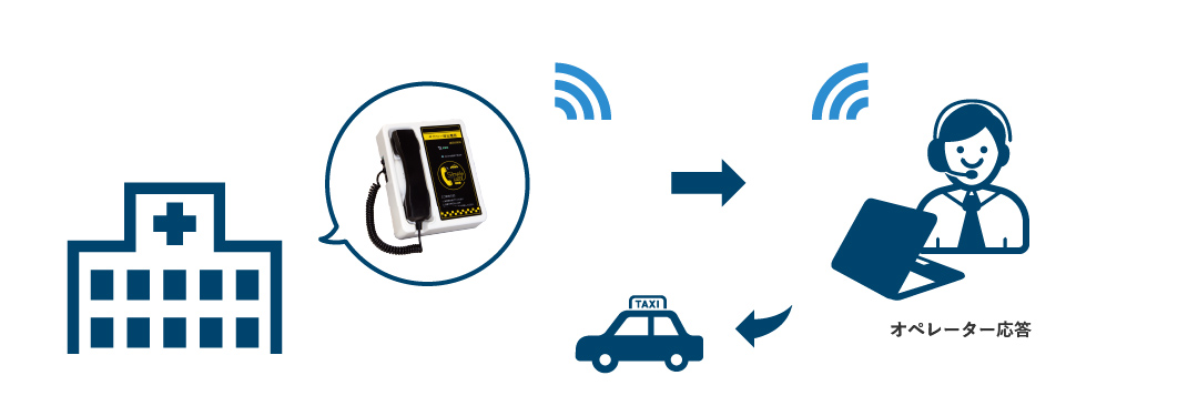 病院や施設でのタクシー呼出電話としてのご利用。4G携帯電話網を利用している為、回線工事不要。