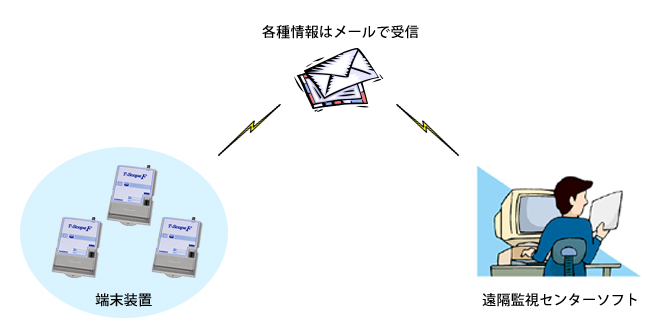 遠隔監視センターソフトは、T-Scope F (LS-10E)と通信を行い、各種情報の表示、