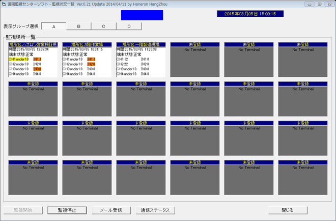 ・端末装置から送信された各種イベント通報を受信してモニタ表示します。