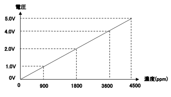 計算式:CO2濃度(ppm) = 電圧(V)×900